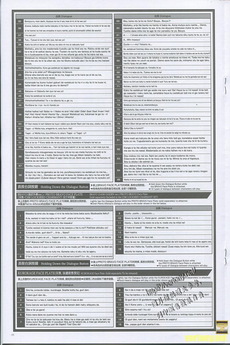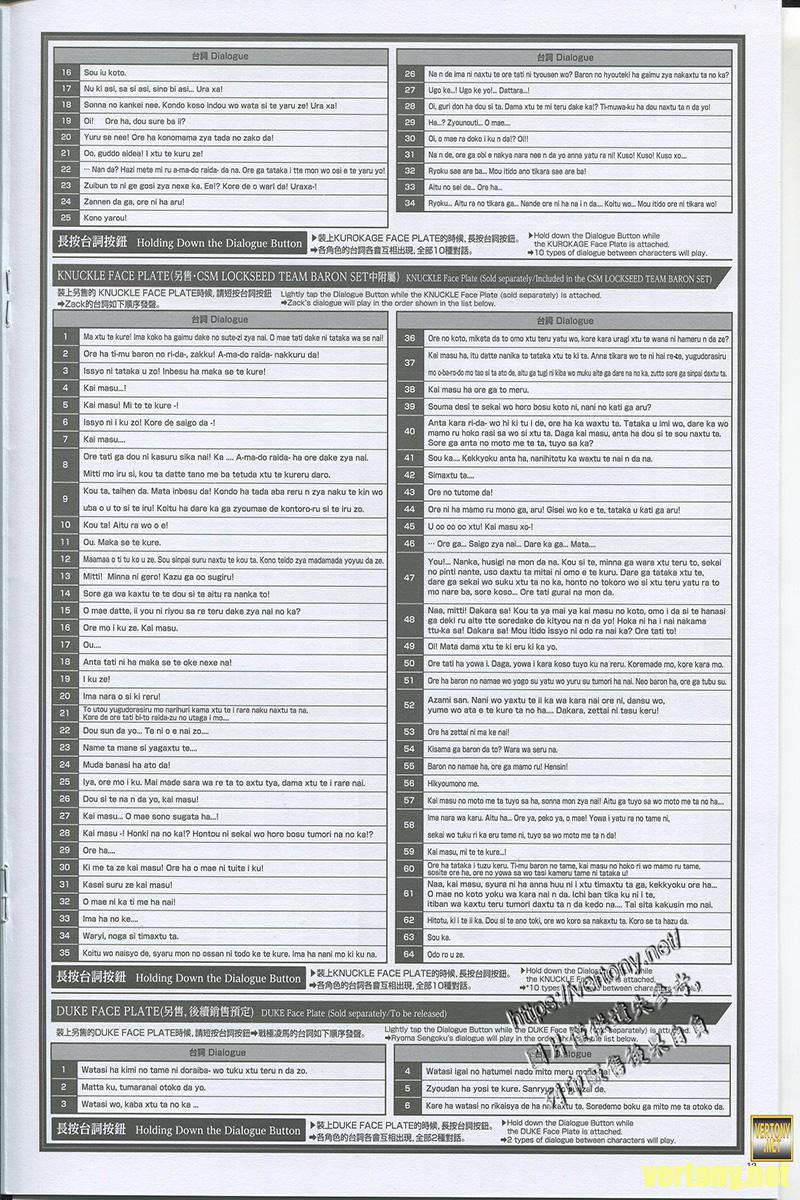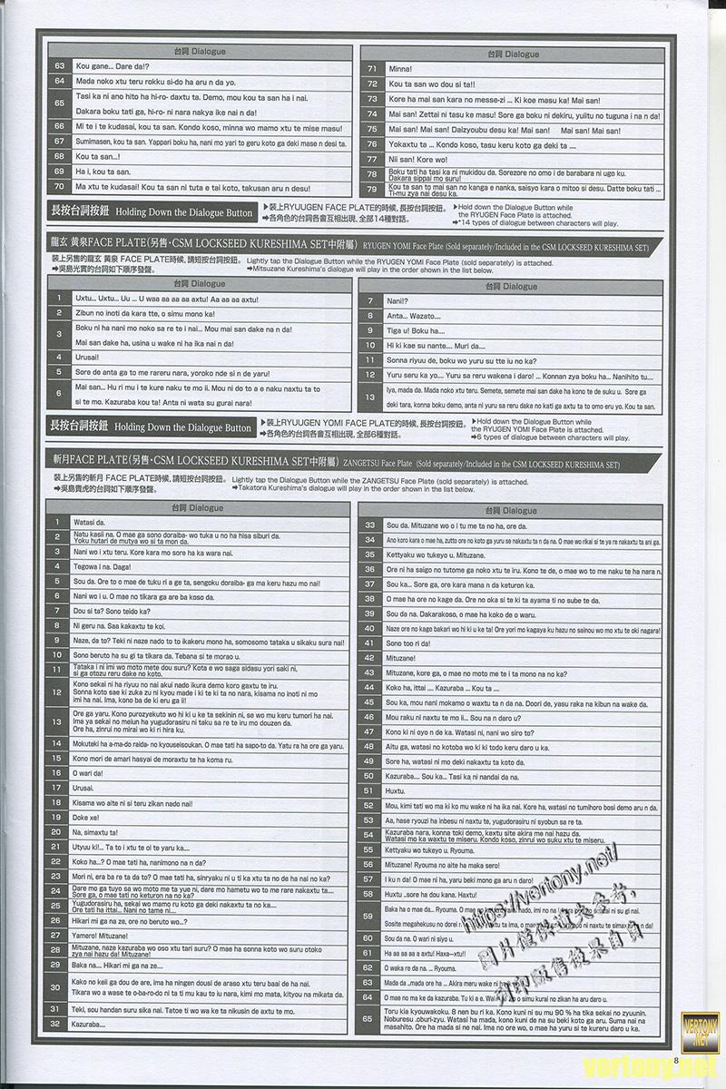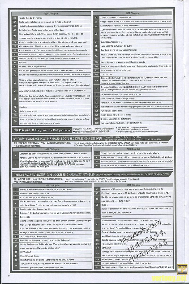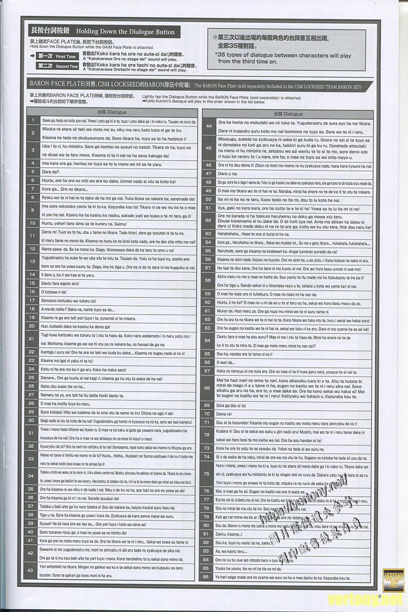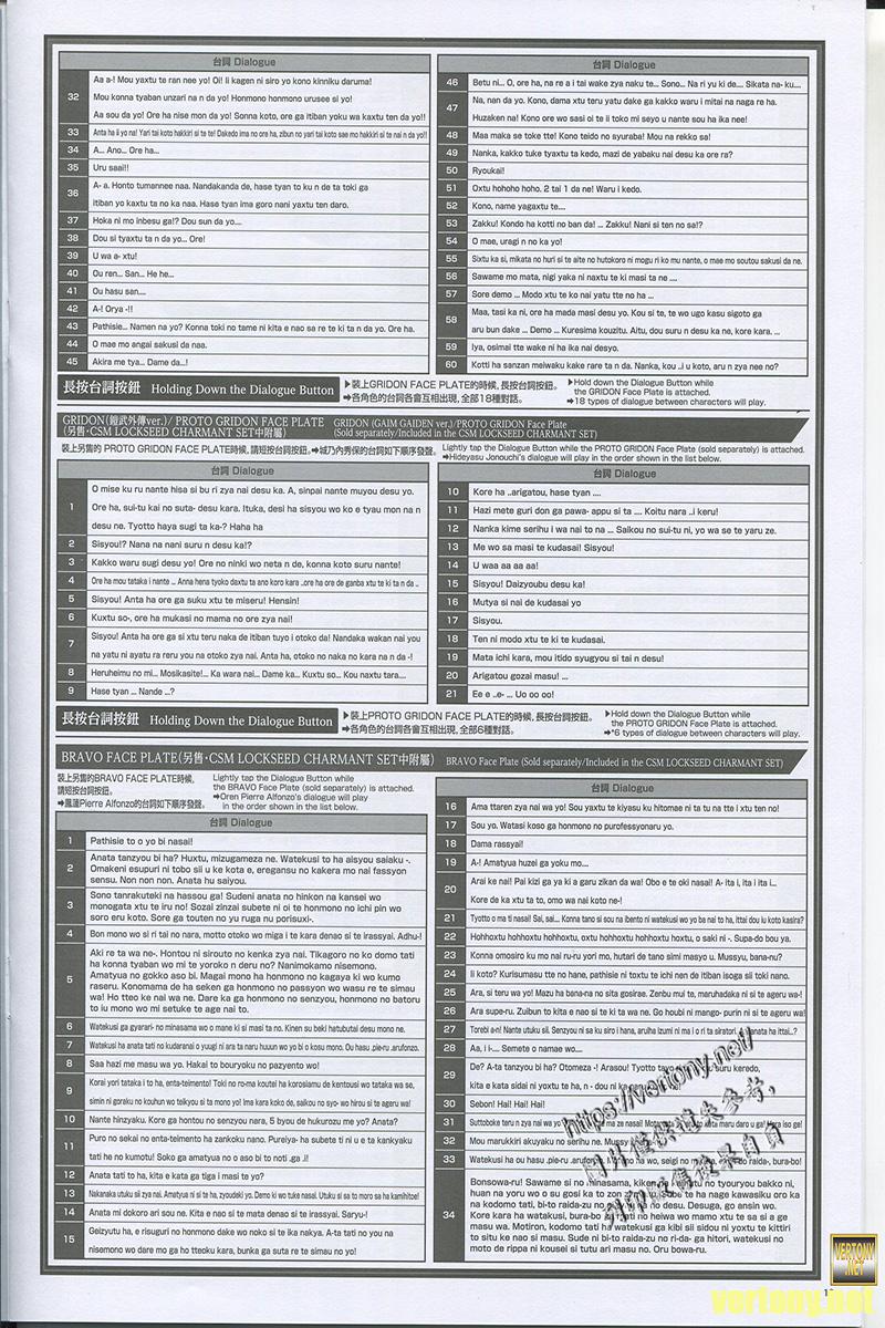由於面板是鎧武的所以這時候按台詞同樣是原本的143種