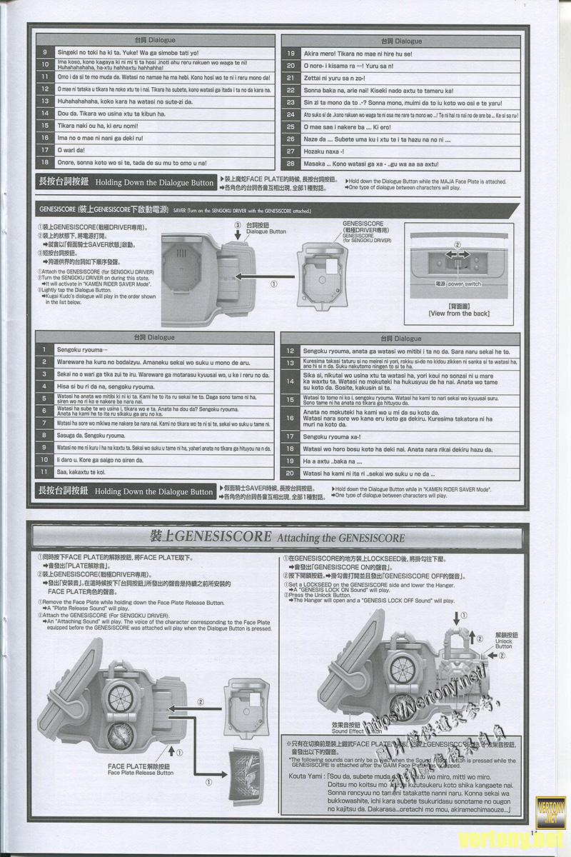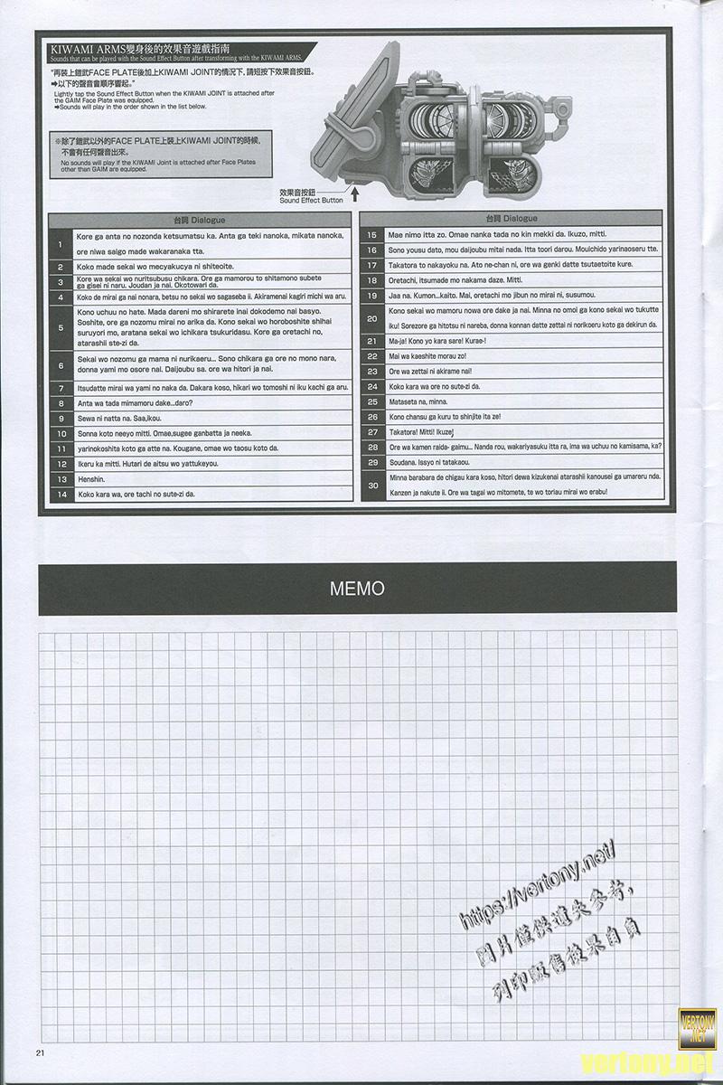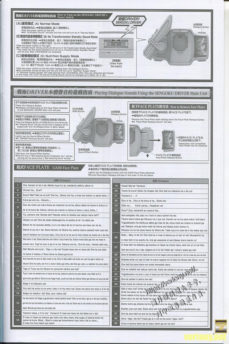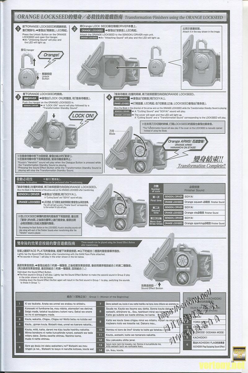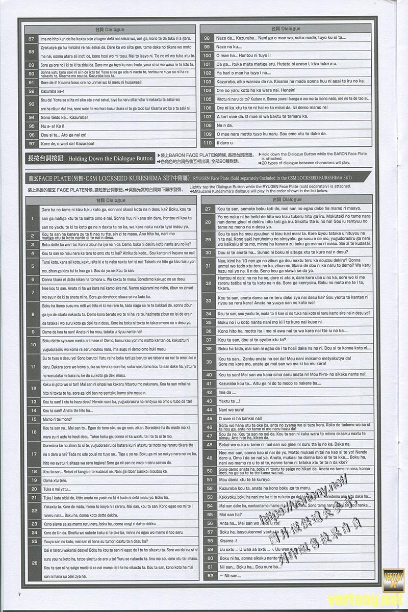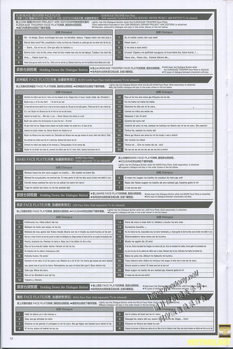 由於面板是鎧武的所以這時候按台詞同樣是原本的143種