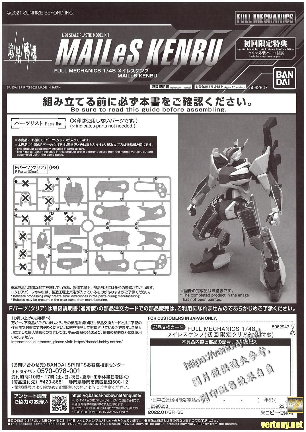 [萬代FM組裝模型]FM 1/48 境界戰機 YM-02建武 初回限定特典版/MAILeS KENBU/メイレスケンブ(初回限定クリア外装付き)