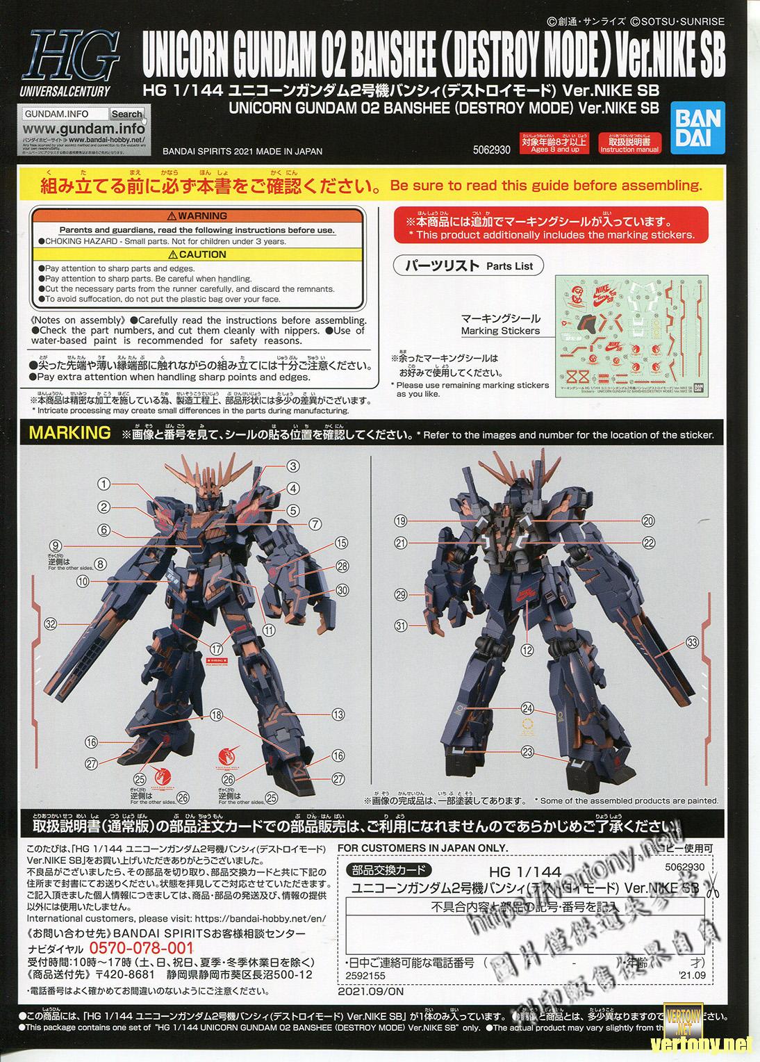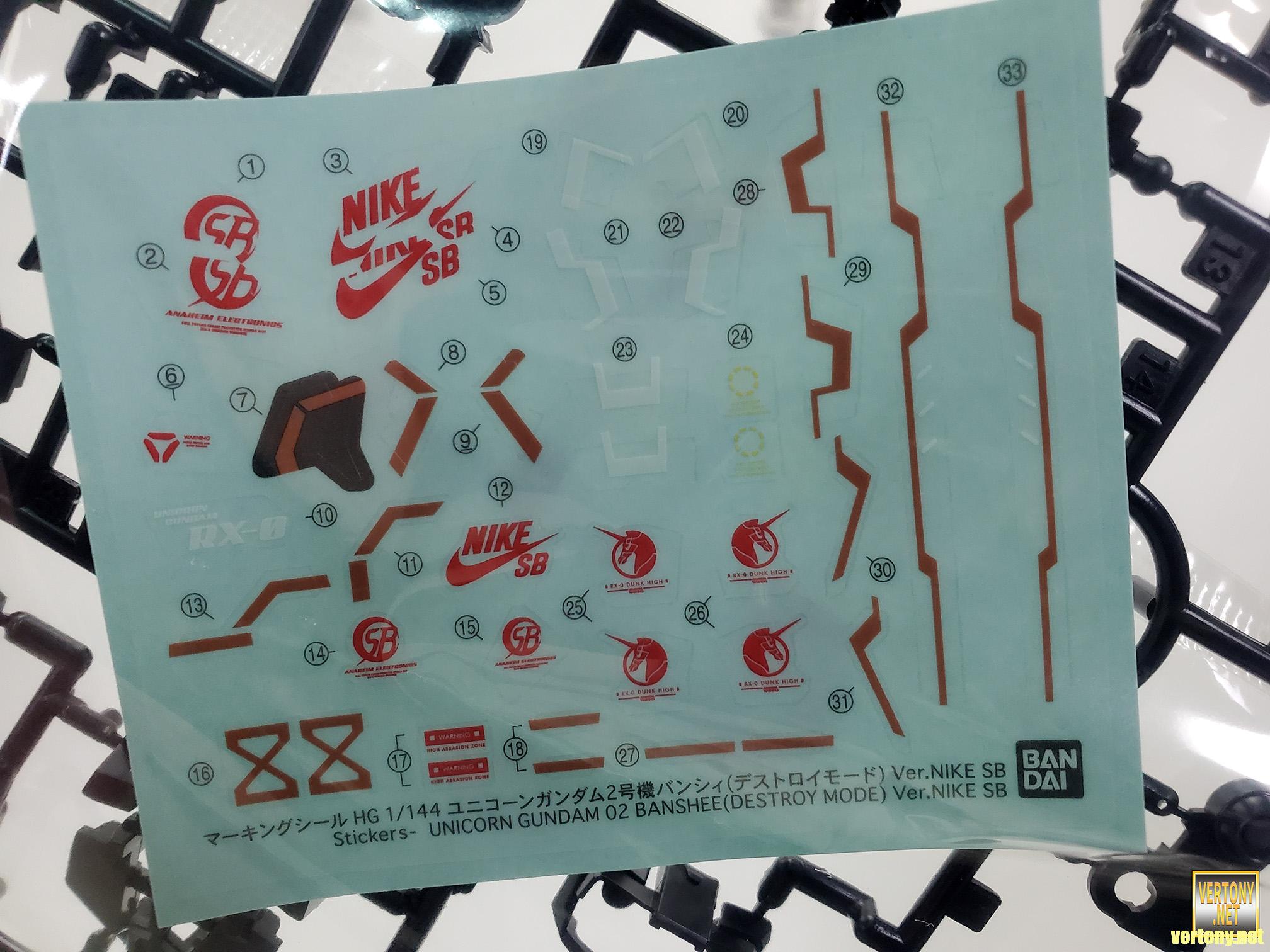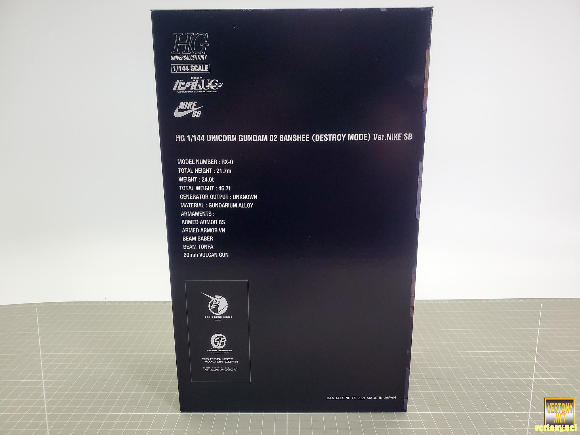 [BANDAI HG MODEL UNBOX]PB HG 1/144 NIKE SB x GUNDAM UC RX-0 UNICORN GUNDAM 02 BANSHEE(DESTROY MODE) Ver.NIKE SB