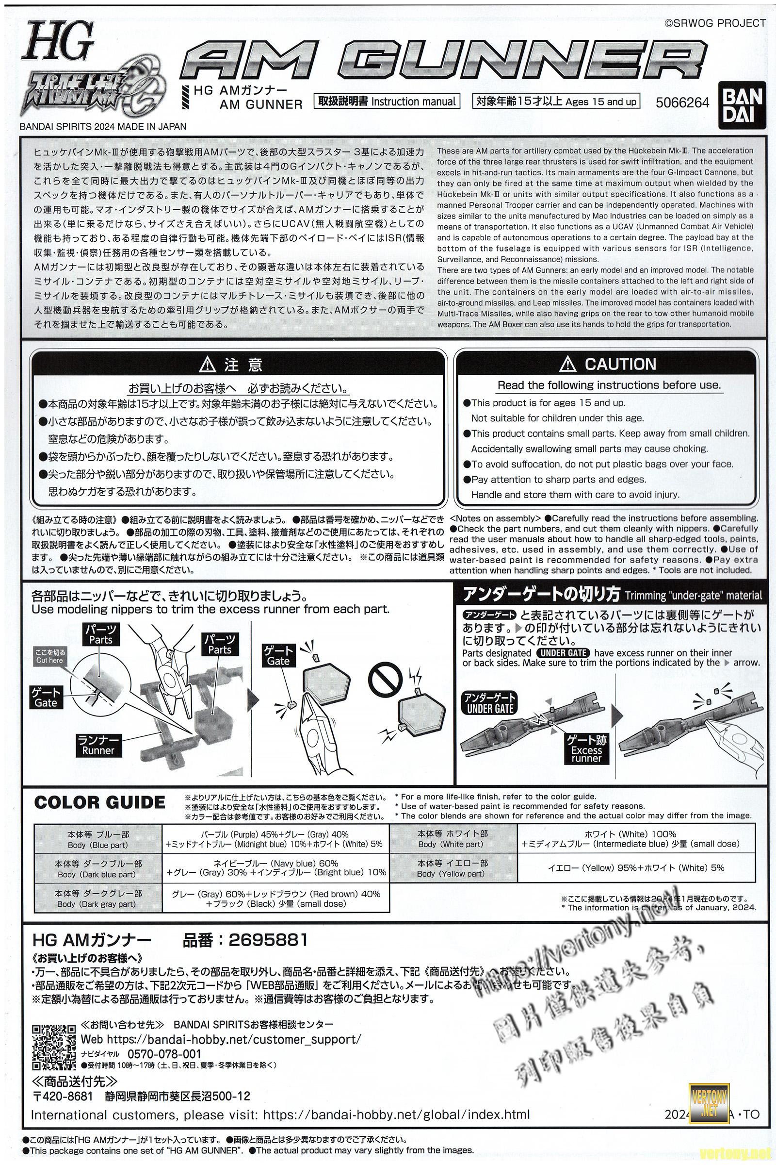 BANDAI PB HG AM Gunner -SUPER ROBOT WARS OG series-UNBOX