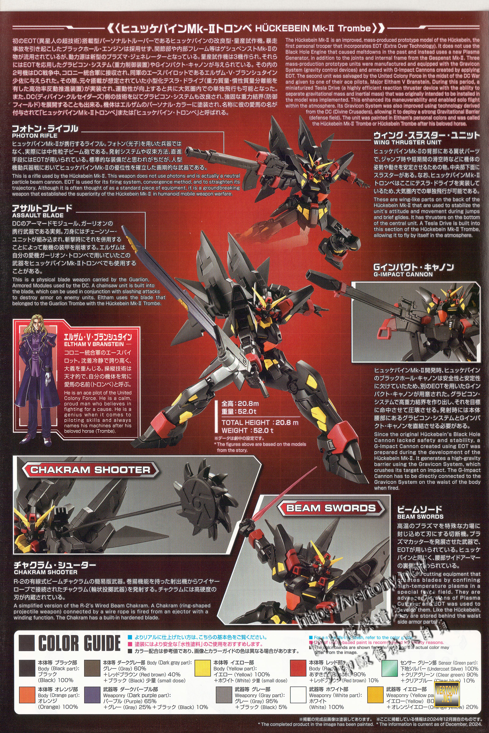 BANDAI PB HG HÜCKEBEIN Mk-II Trombe -SUPER ROBOT WARS OG series-UNBOX