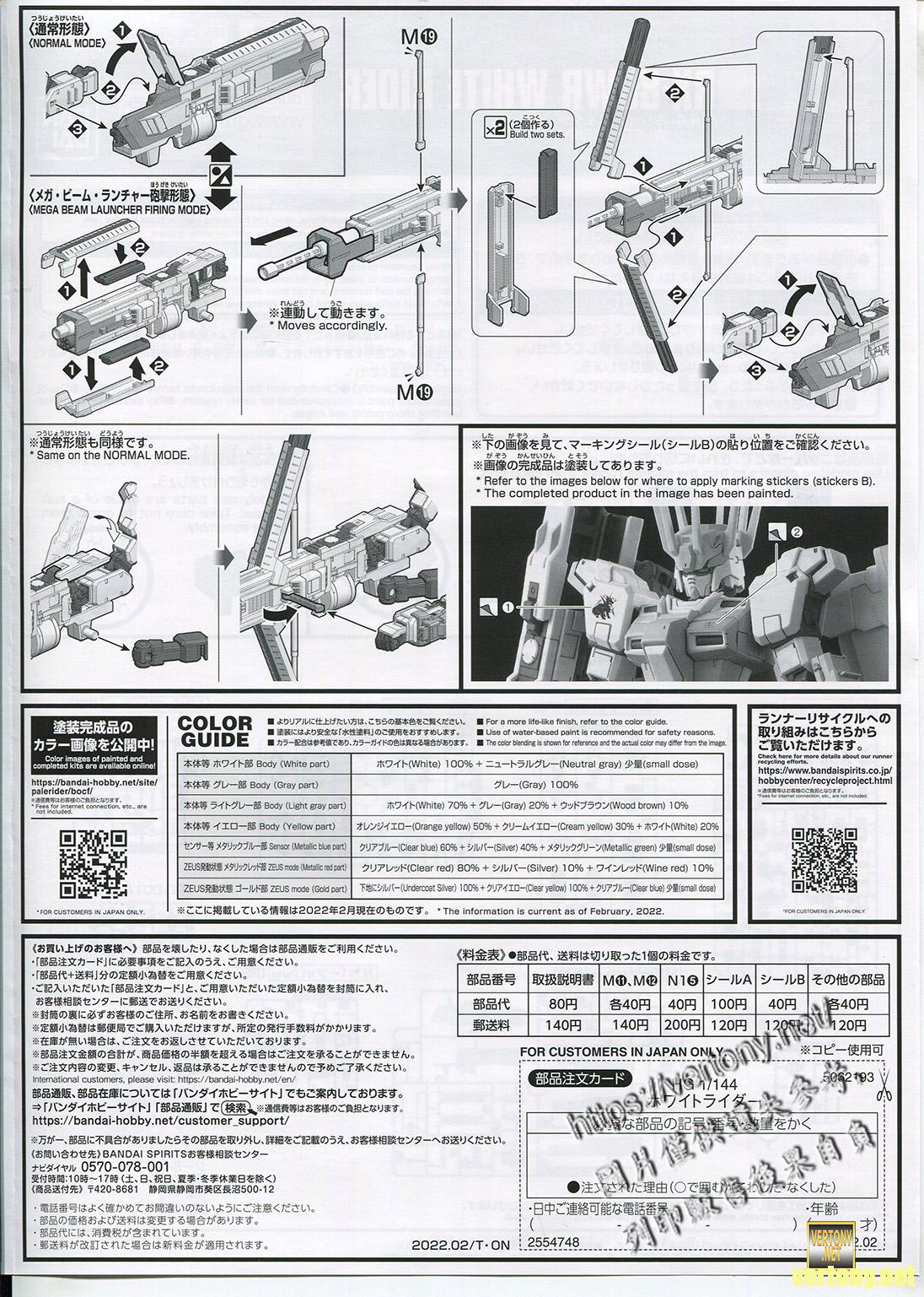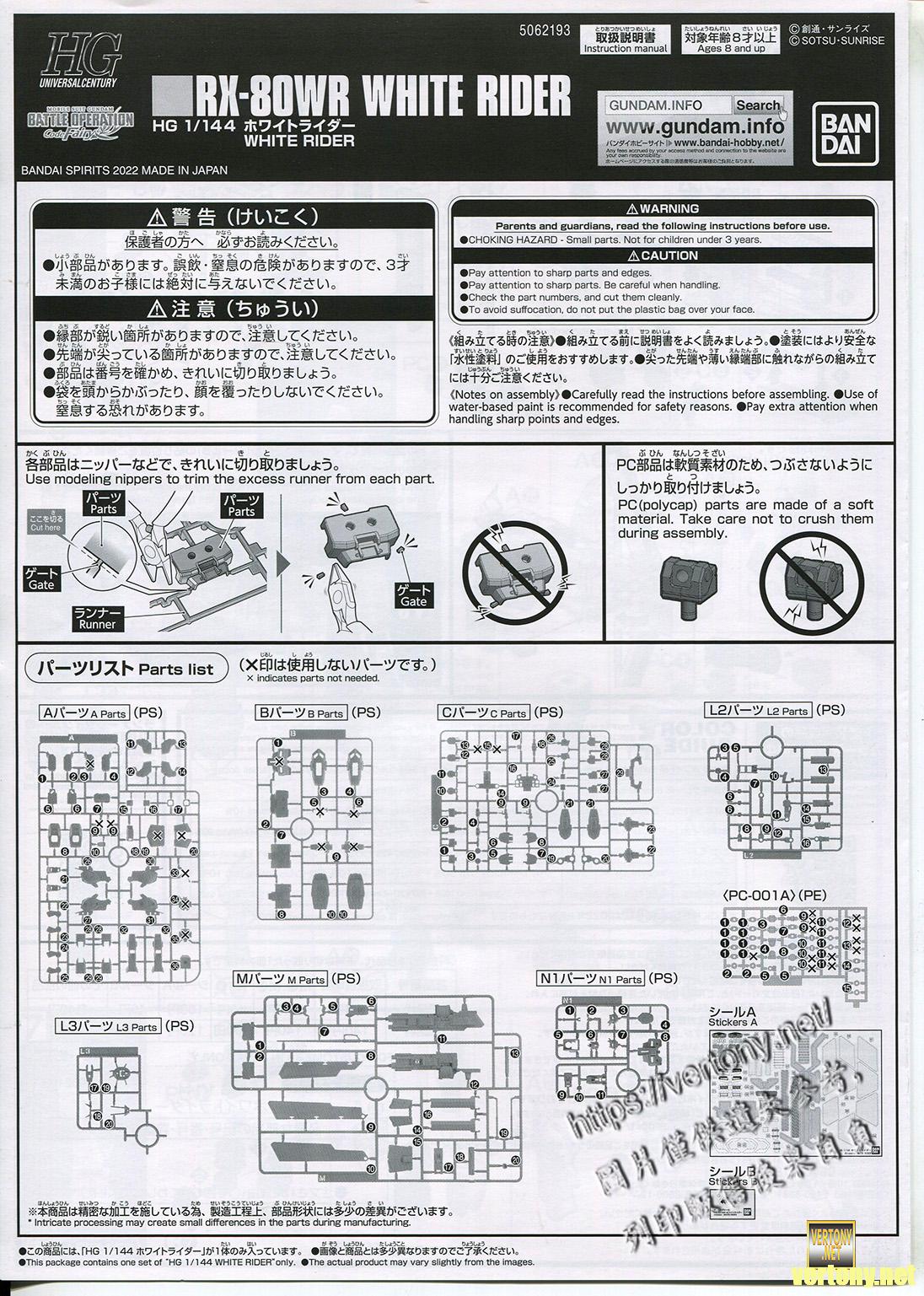 [BANDAI HG MODEL UNBOX]PB HG 1/144 Gundam Battle Operation Code Fairy RX-80WR WHITE RIDER