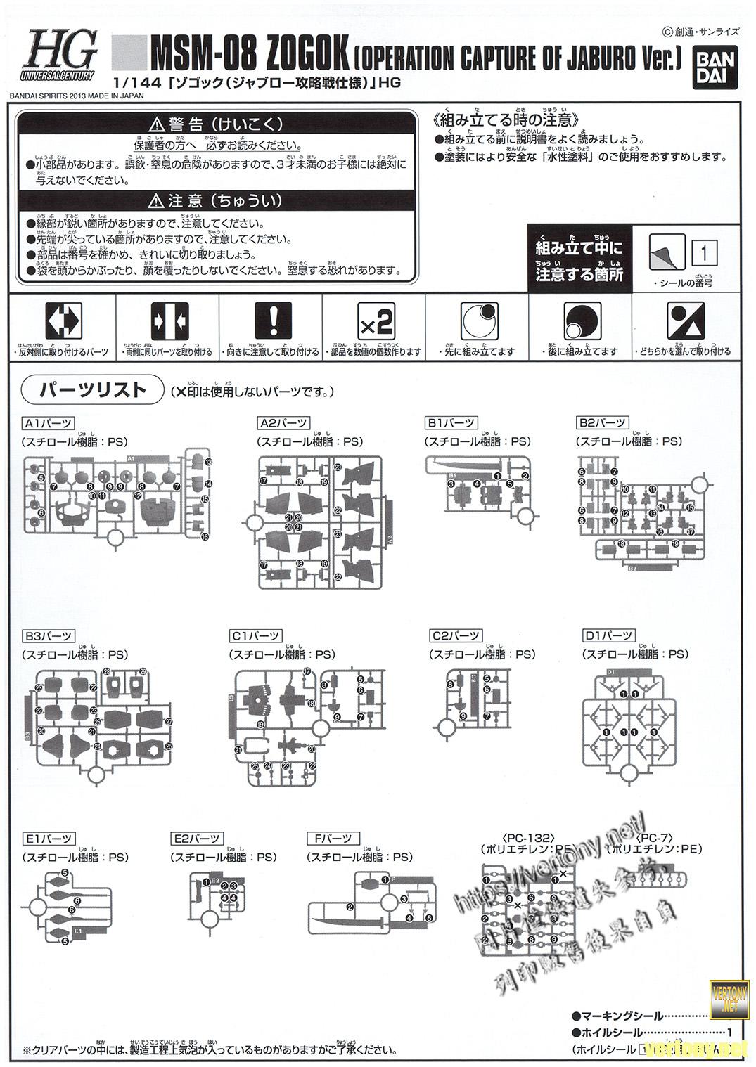 [BANDAI HG MODEL UNBOX]PB HG 1/144 GUNDAM MSV MSM-08 ZOGOK (Operation Capture of Jaburo ver.)