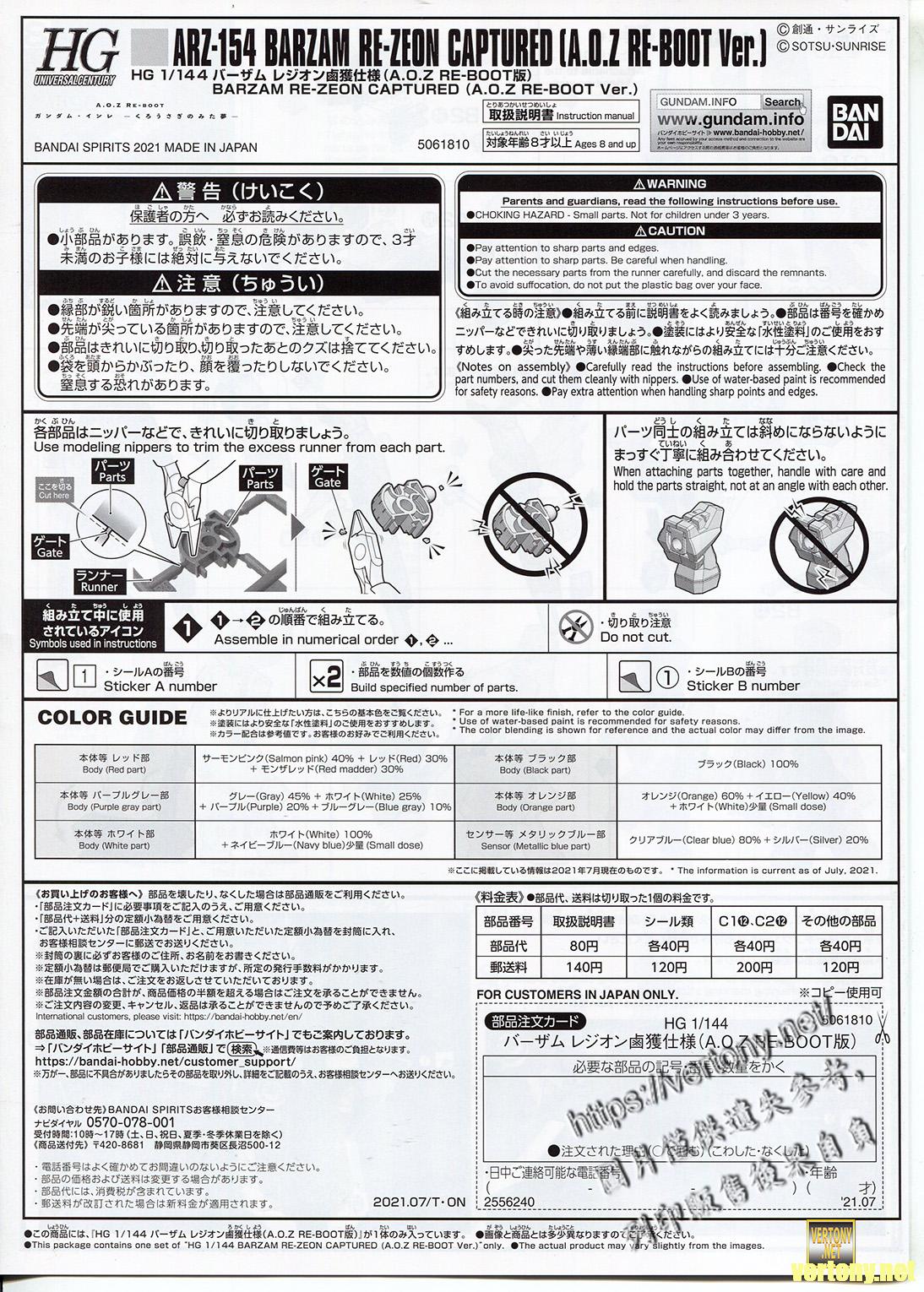 承上一篇的[萬代HG組裝模型]PB HG 1/144 A.O.Z Re-Boot 鋼彈・銀雷-黑兔之夢- RMS-154 巴薩姆(A.O.Z RE-BOOT Ver.)/BARZAM (A.O.Z RE-BOOT Ver.)/バーザム (A.O.Z RE-BOOT版)