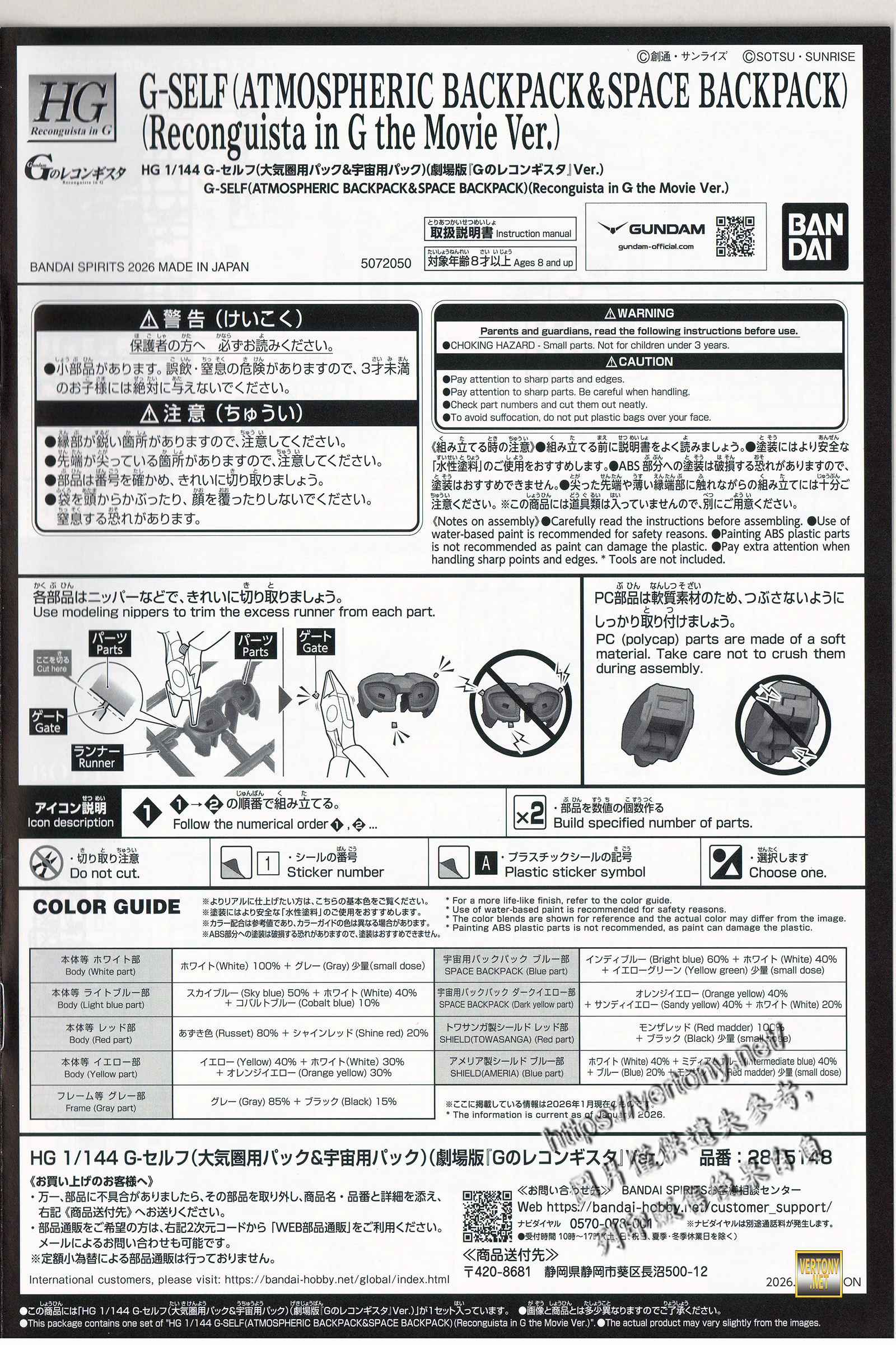 BANDAI PB HG 1/144 G-SELF(ATMOSPHERIC BACKPACK&SPACE BACKPACK)(Reconguista in G the Movie Ver.) -GUNDAM Reconguista in G -series-UNBOX