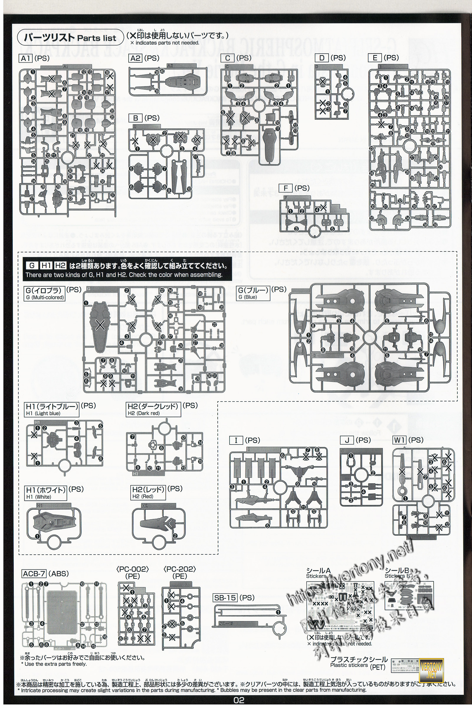 HG 1/144 鋼彈 G-自我 用選擇配件宇宙用背包