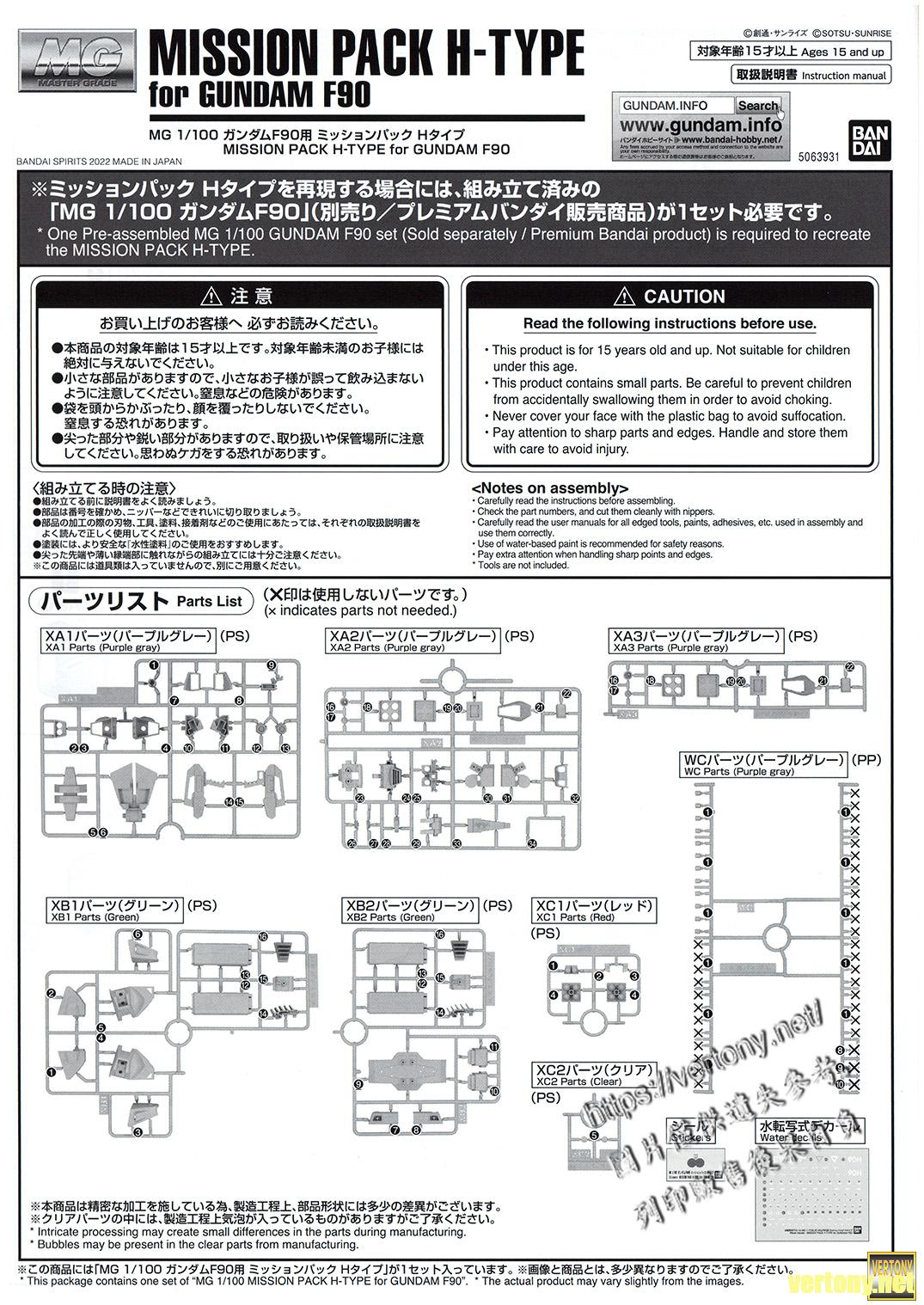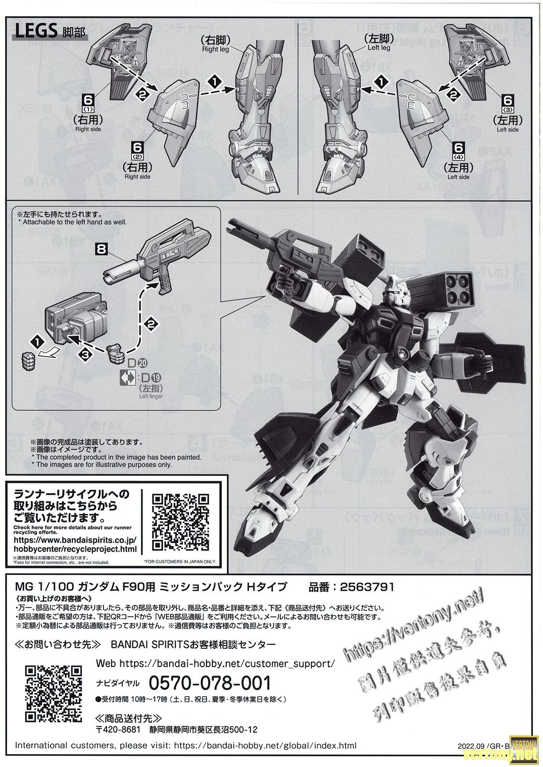 [BANDAI MG MODEL UNBOX]PB MG 1/100 MISSION PACK H-TYPE for GUNDAM F90