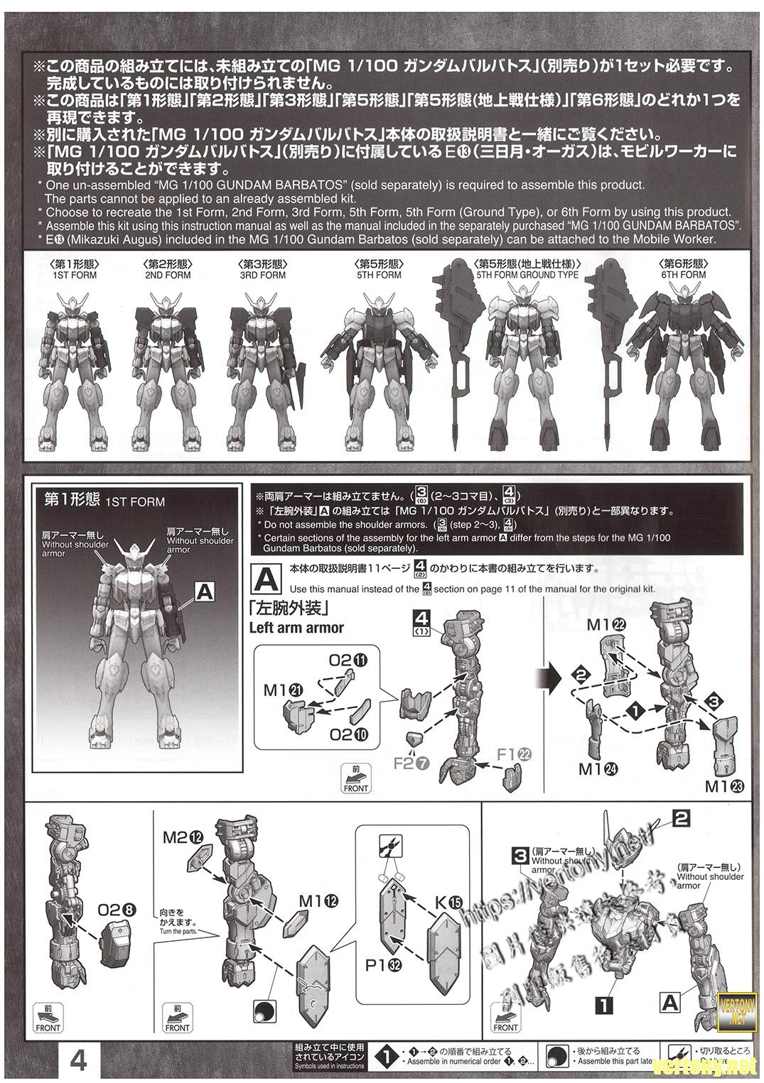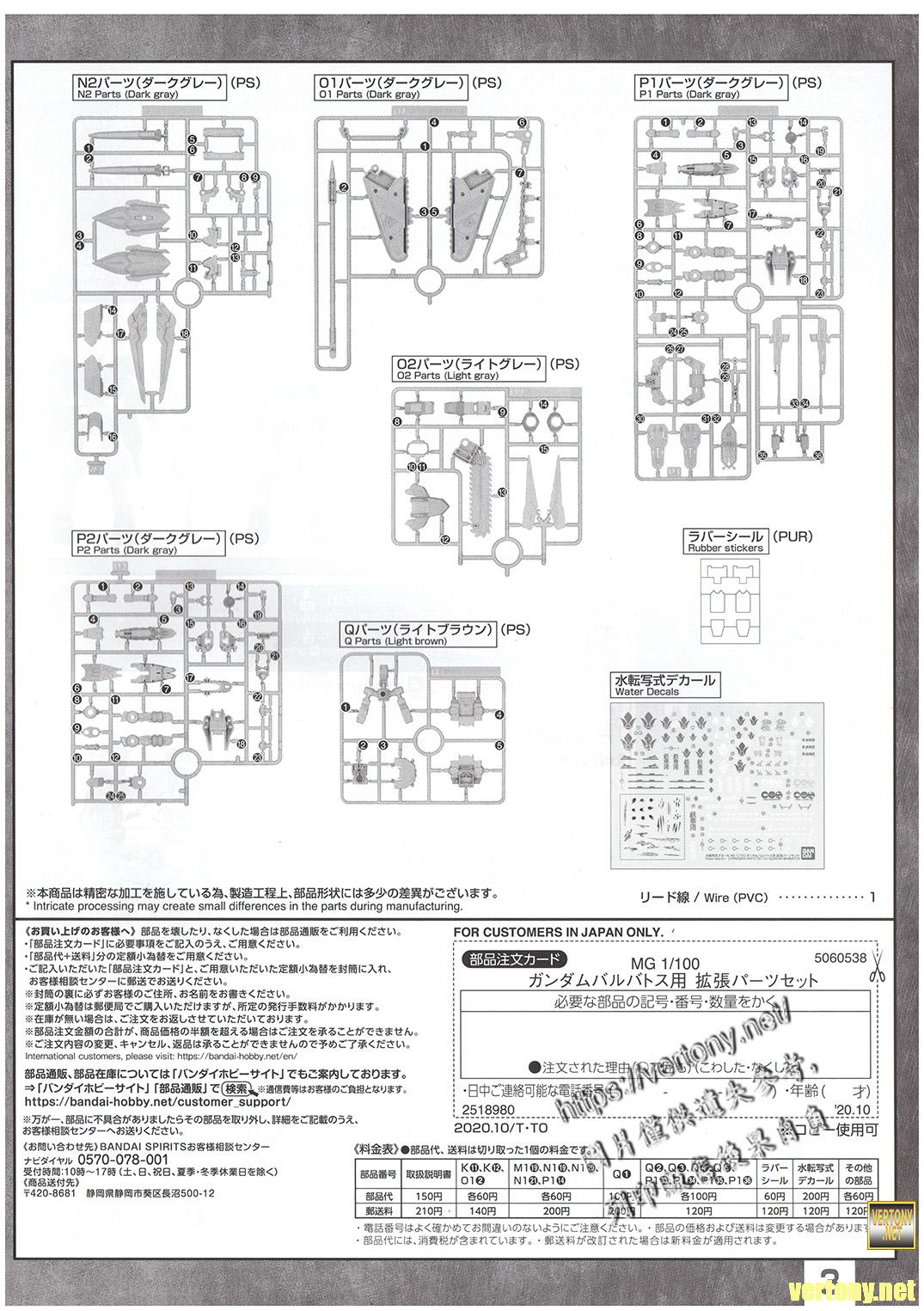 [BANDAI MG MODEL UNBOX]PB MG 1/100 GUNDAM Iron-Blooded Orphans EXPANSION PARTS SET for GUNDAM BARBATOS