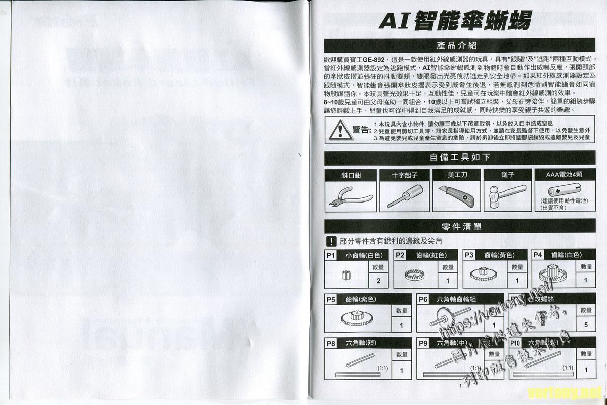 [ProsKit組裝模型開箱]寶工科學玩具 GE-892 AI智能傘蜥蜴