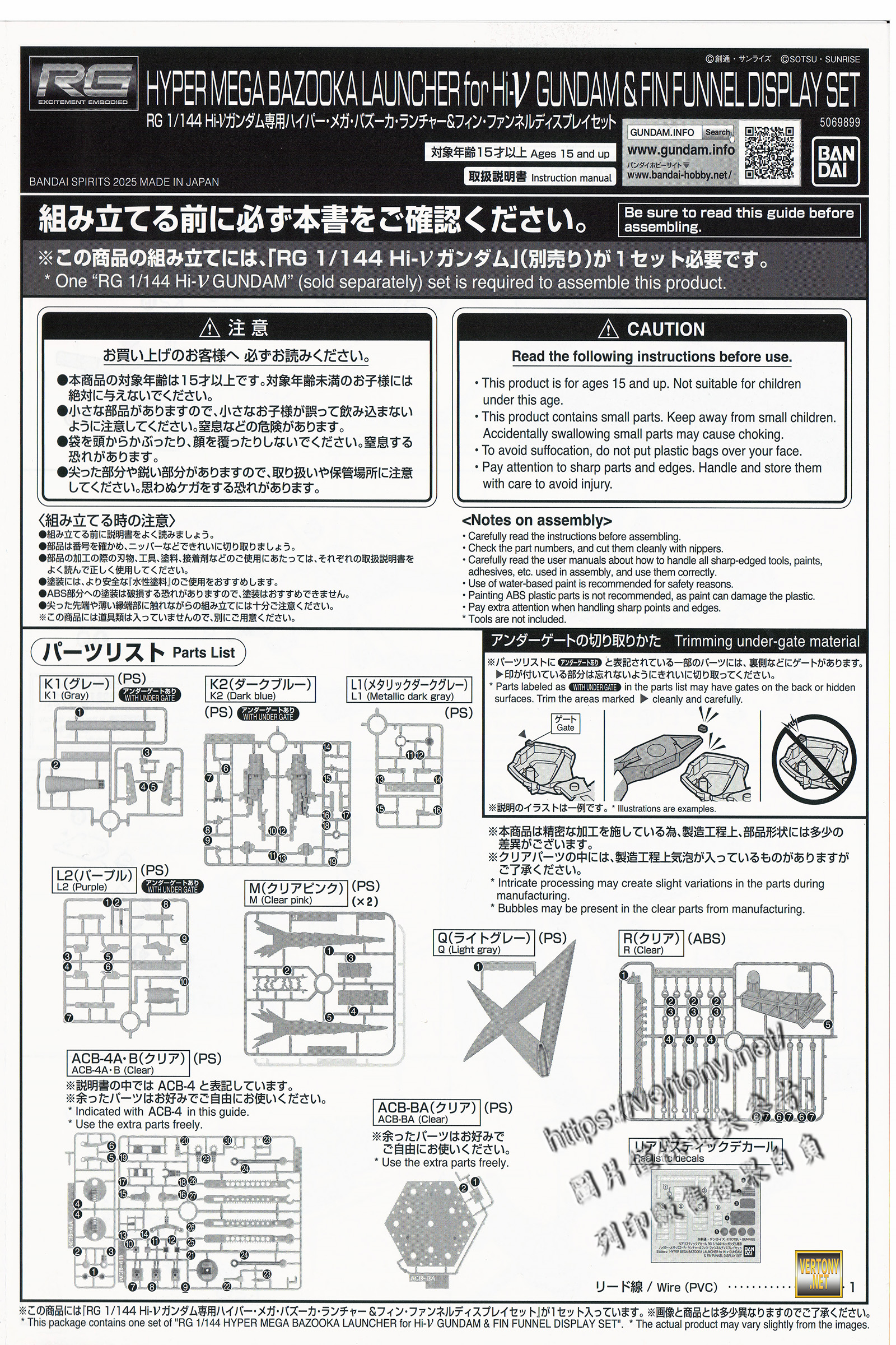 BANDAI PB RG 1/144 HYPER MEGA BAZOOKA LAUNCHER for Hi-ν GUNDAM & FIN FUNNEL DISPLAY SET -GUNDAM Char’s Counter-Attack MSV -series-UNBOX