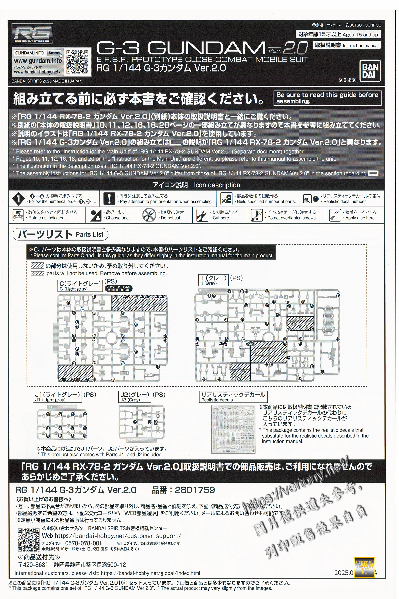 原RG 1/144 鋼彈Ver.2.0版 彩色說明書一本