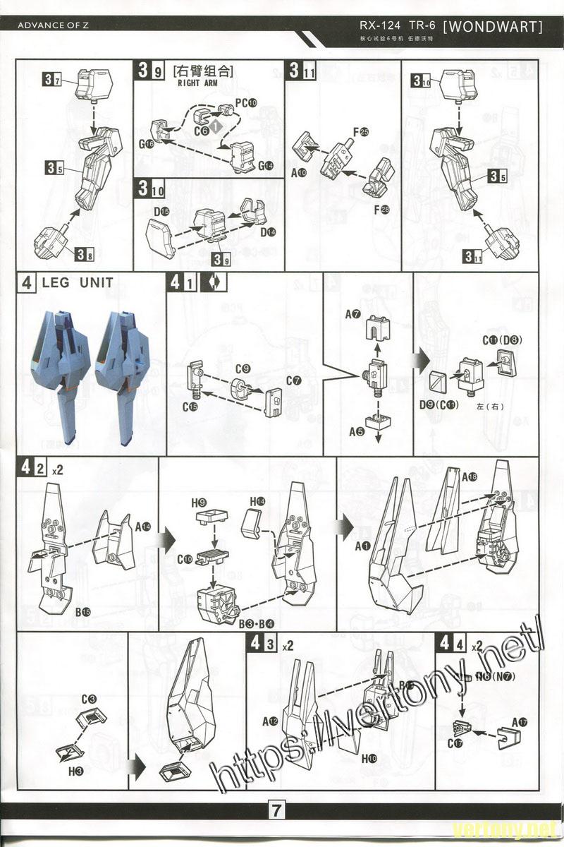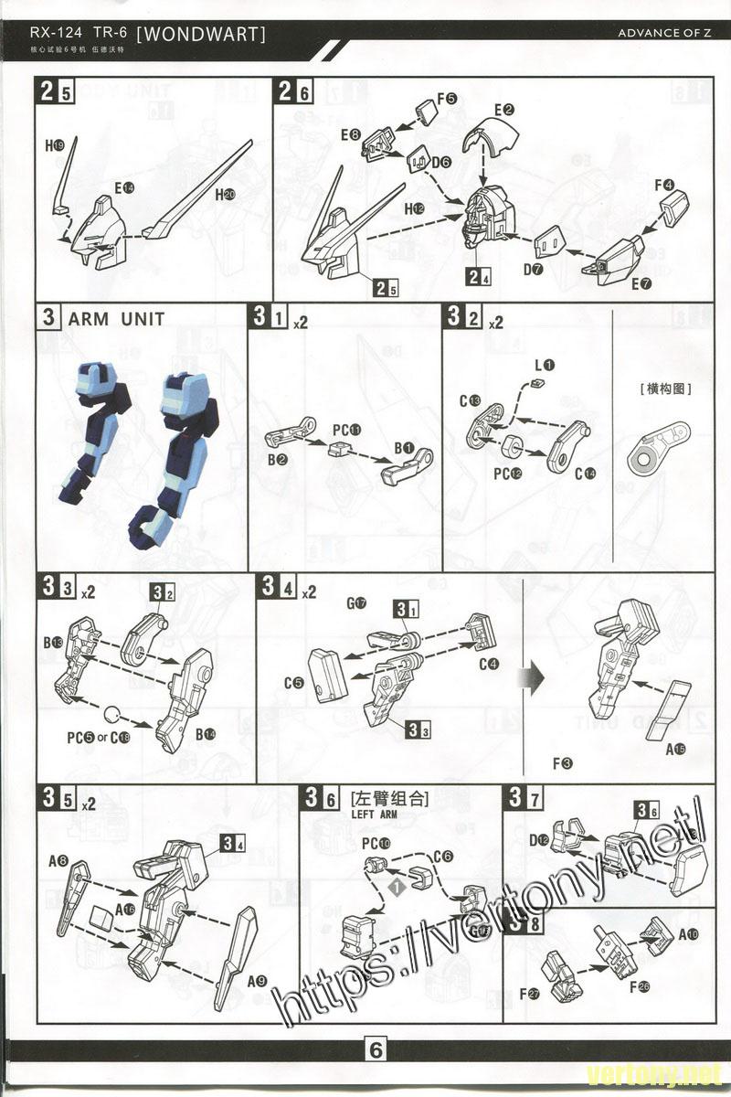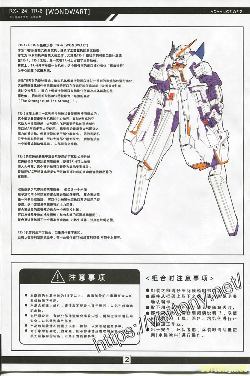 CUTECUBE WORKSHOP 1/100 RX-124 GUNDAM TR-6 伍德沃特[WONDWART]  說明書掃圖一份
