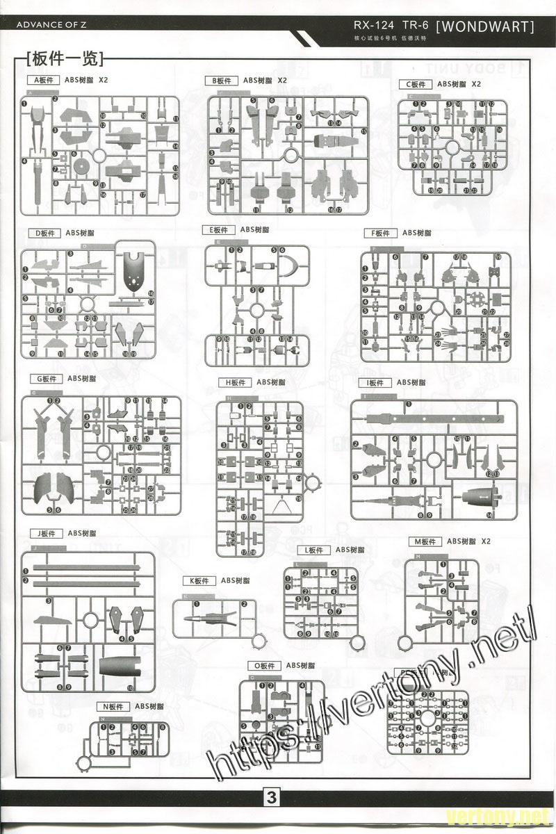 CUTECUBE WORKSHOP 1/100 RX-124 GUNDAM TR-6 伍德沃特[WONDWART]  零件翻拍一覽,基本上雙面都會都拍攝