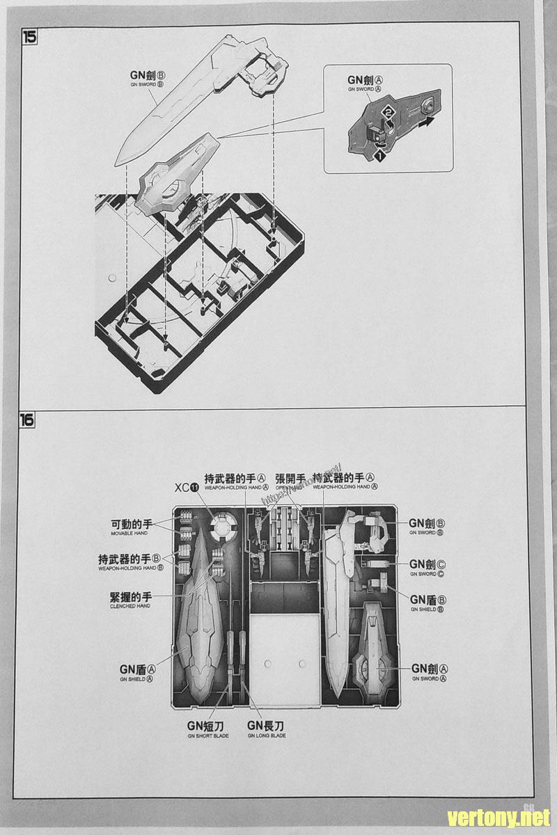 [補開箱]大班 PG 1/60 GN-001/hs-A01D 雪崩突進型能天使鋼彈 版件對照整理