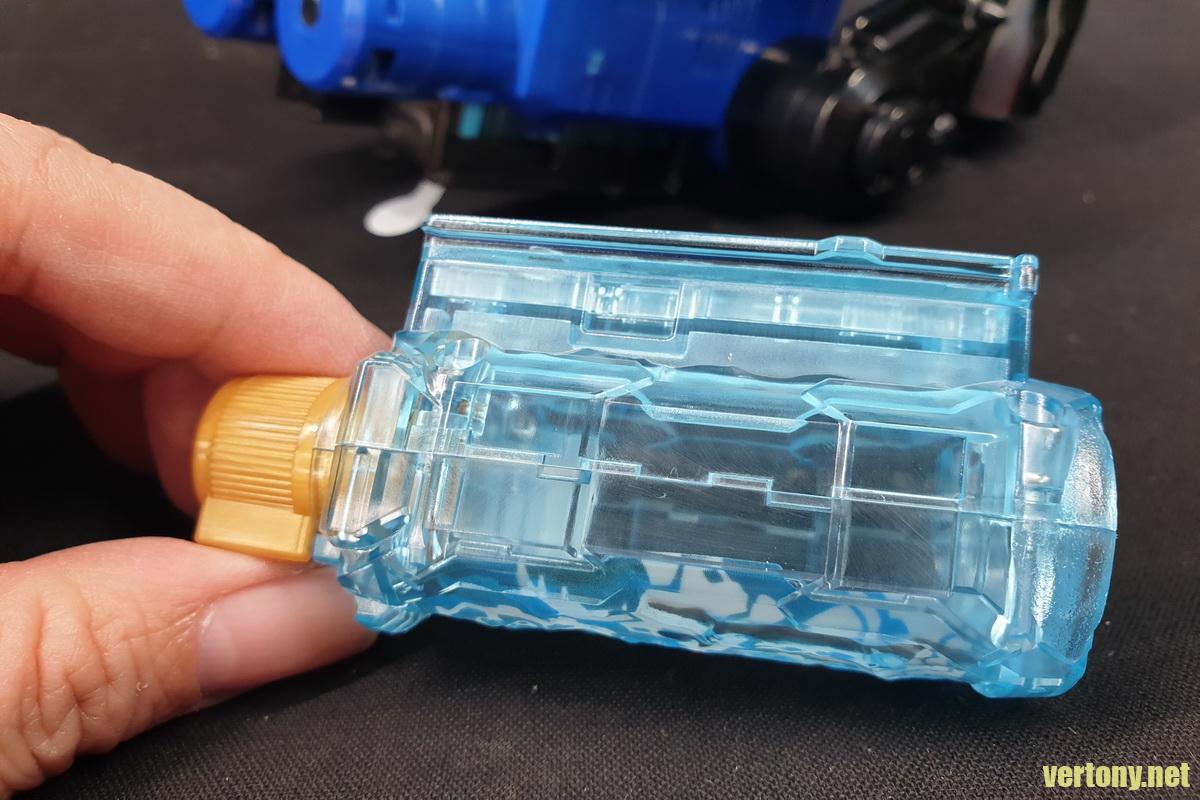 裝上北極暴風雪滿裝瓶,按下側邊突出按紐折起把手