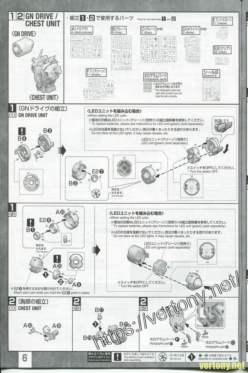這邊我只在意沒有給LED燈XD,畢竟當時買MG能天使 GN-001 ガンダムエクシア イグニッションモード版本有送LED2個