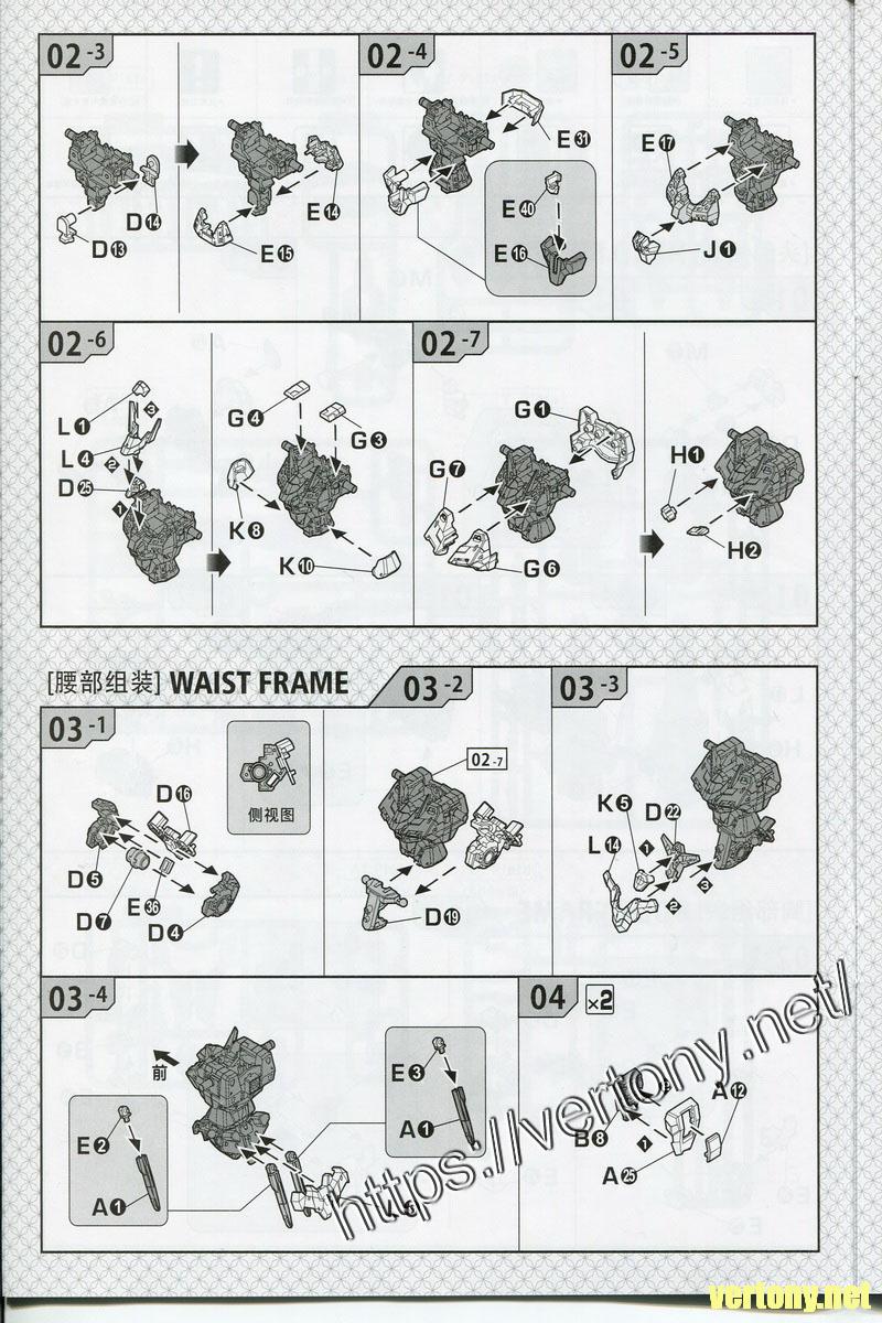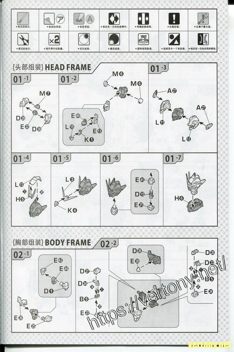 用MG方式裝成MB的頭部分件