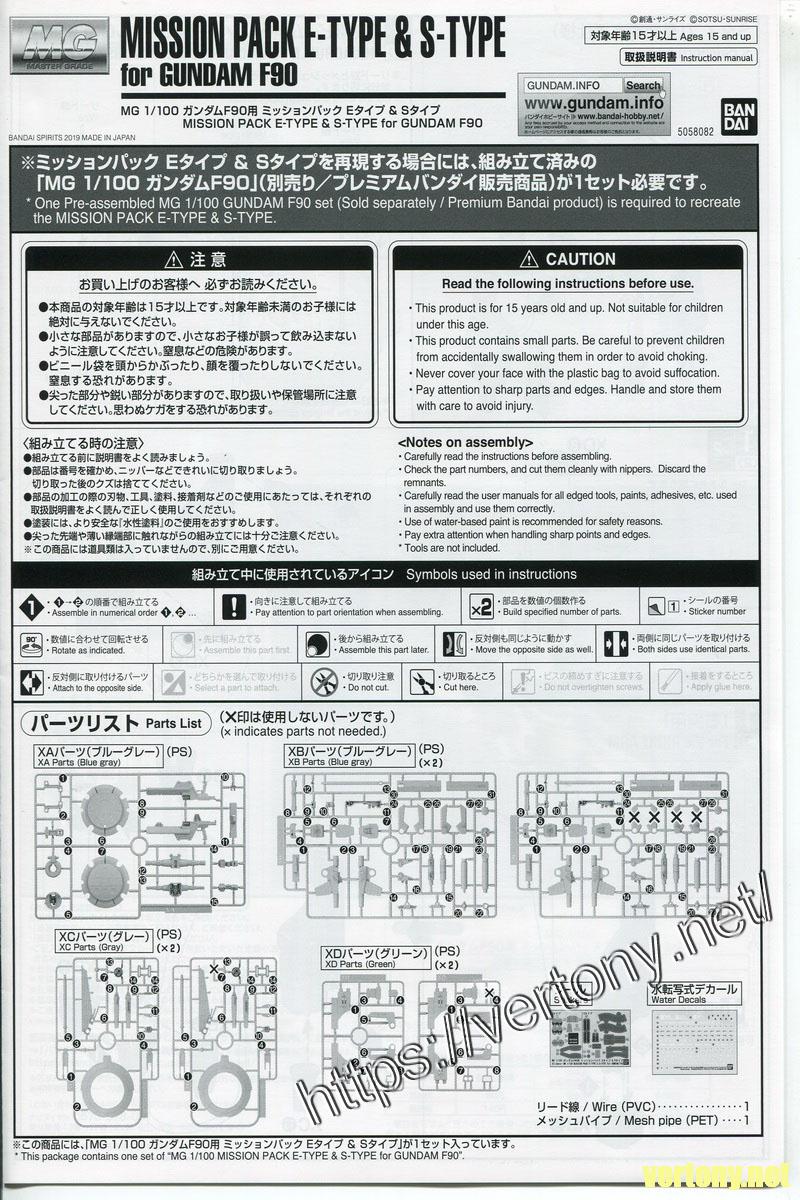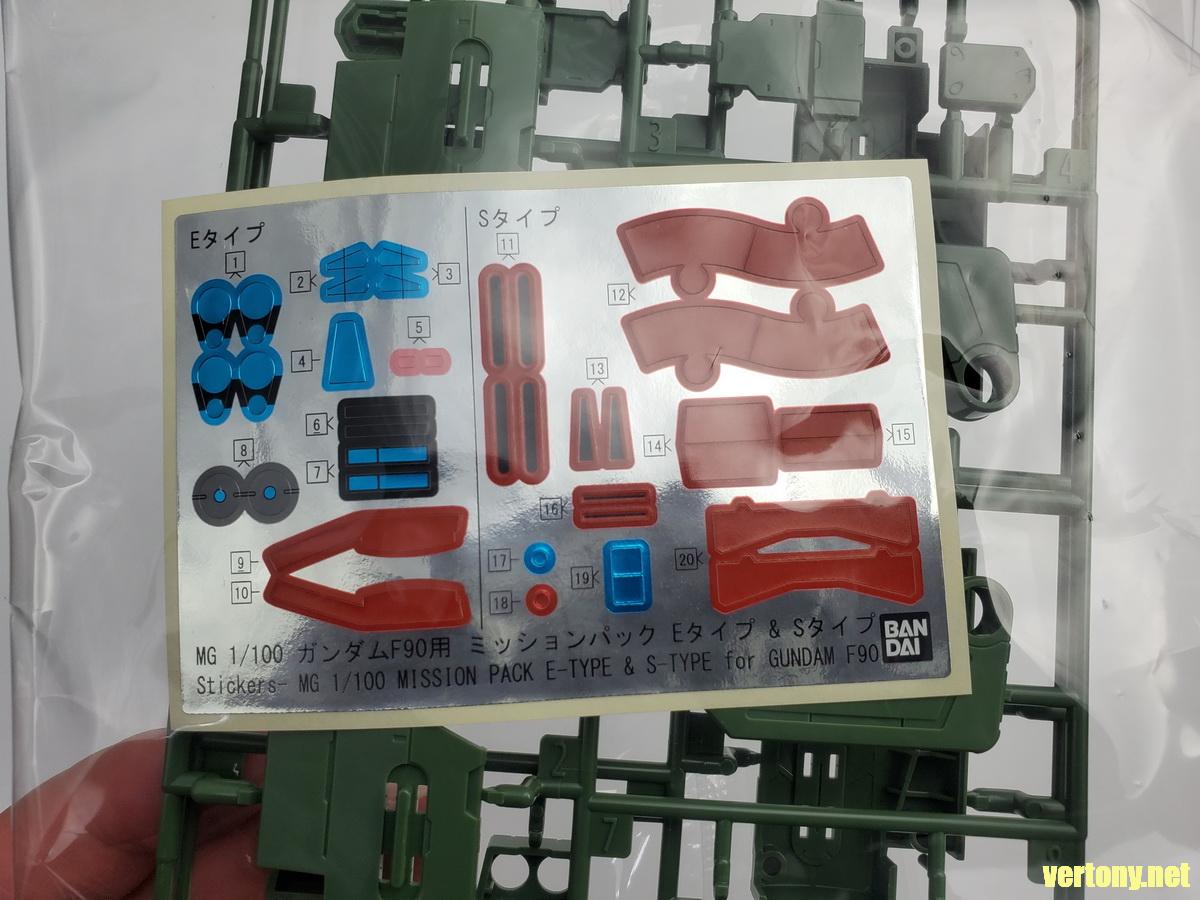 [UNBOX]PB MG 1/100 MISSION PACK E TYPE & S TYPE for MG 1/100 GUNDAM F90