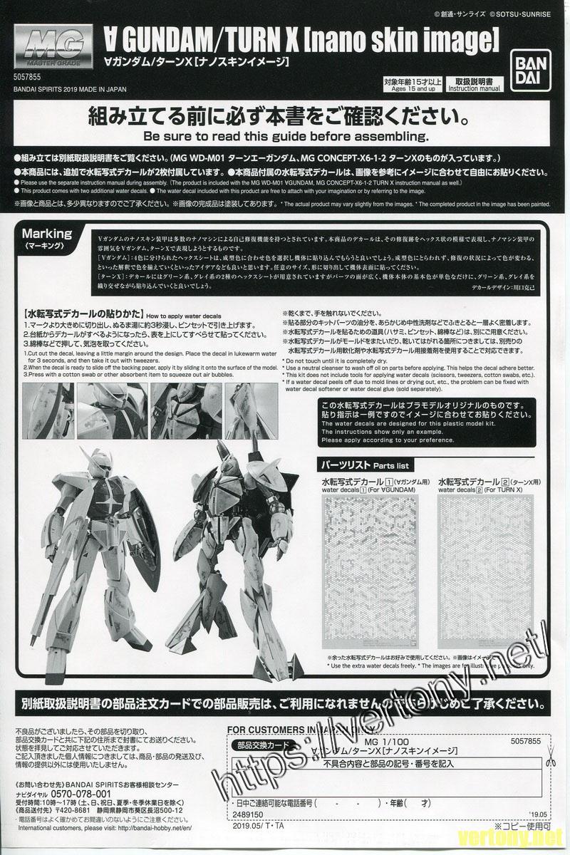 [UNBOX]PB MG 1/100 TURN A GUNDAM/TURN X nano skin image